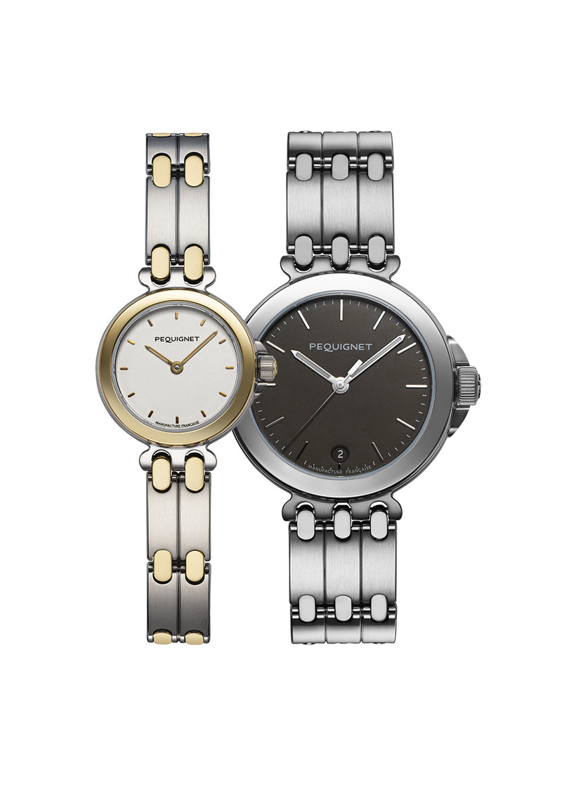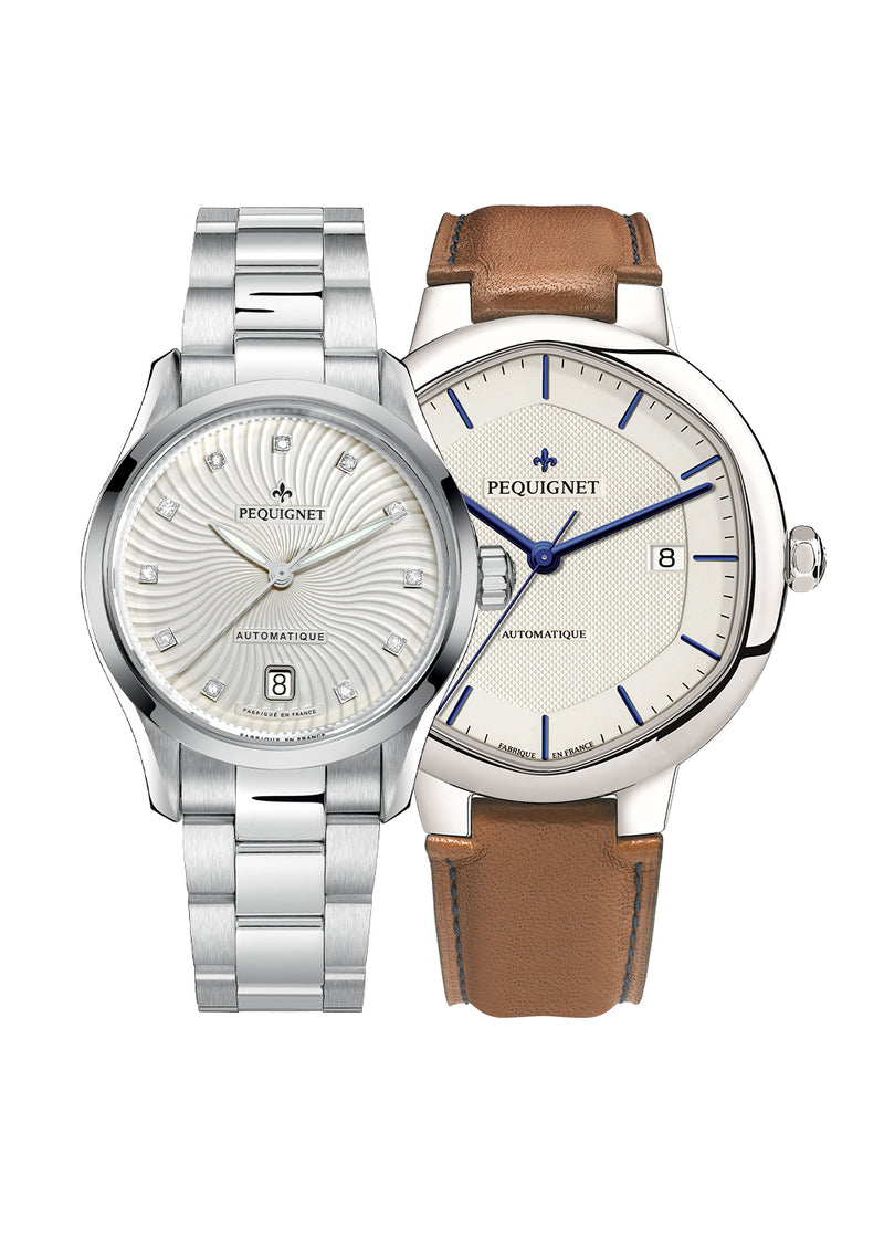Sobres ou singulières, discrètes ou colorées, classiques ou sportives mais toujours raffinées, les montres Pequignet habillent aussi bien les poignets des hommes que des femmes, pour un style unique.