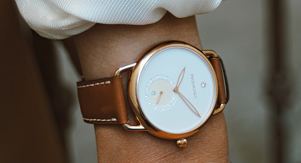 Over time a watch may become less watertight. When worn, a watch is subjected every day to a variety of wear and tear, which may vary from wearer to wearer (more or less violent, knocks, sweat, sudden changes in temperature ; sea water, swimming pool water, etc.). These all have an effect of the premature ageing of the gaskets. This is why it is necessary to have your watch checked regularly for water-tightness by an Pequignet accredited retailer.