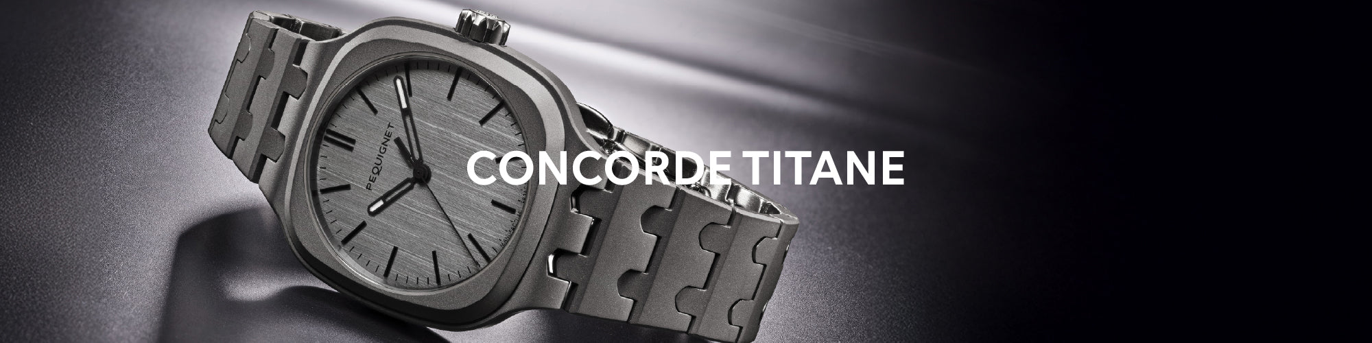 L'orologio Concorde in titanio è l'incontro perfetto tra stile e comfort. Il titanio opaco, con il suo grigio setoso e l'aspetto leggermente scuro, mette in risalto il design pulito di questa collezione decisamente urbana e sport-chic.