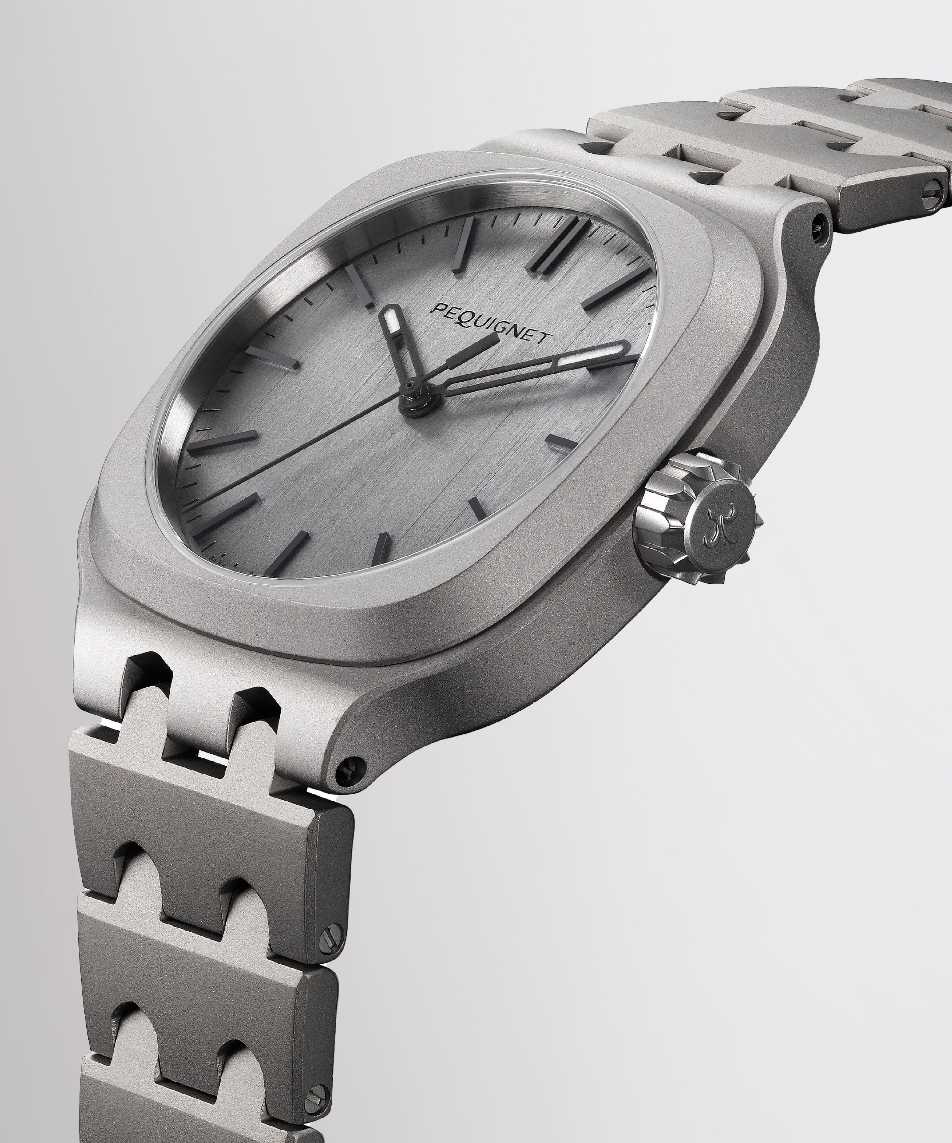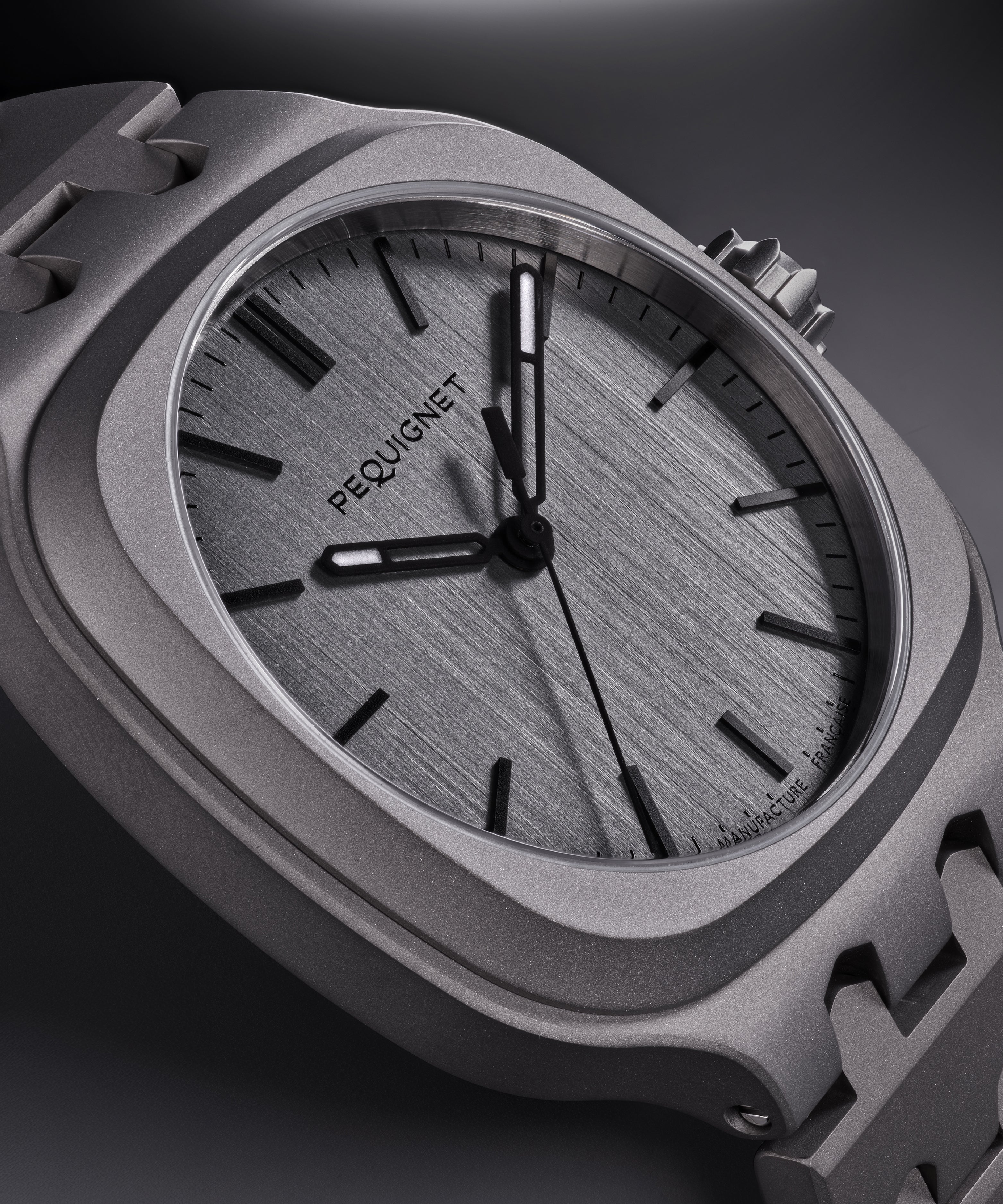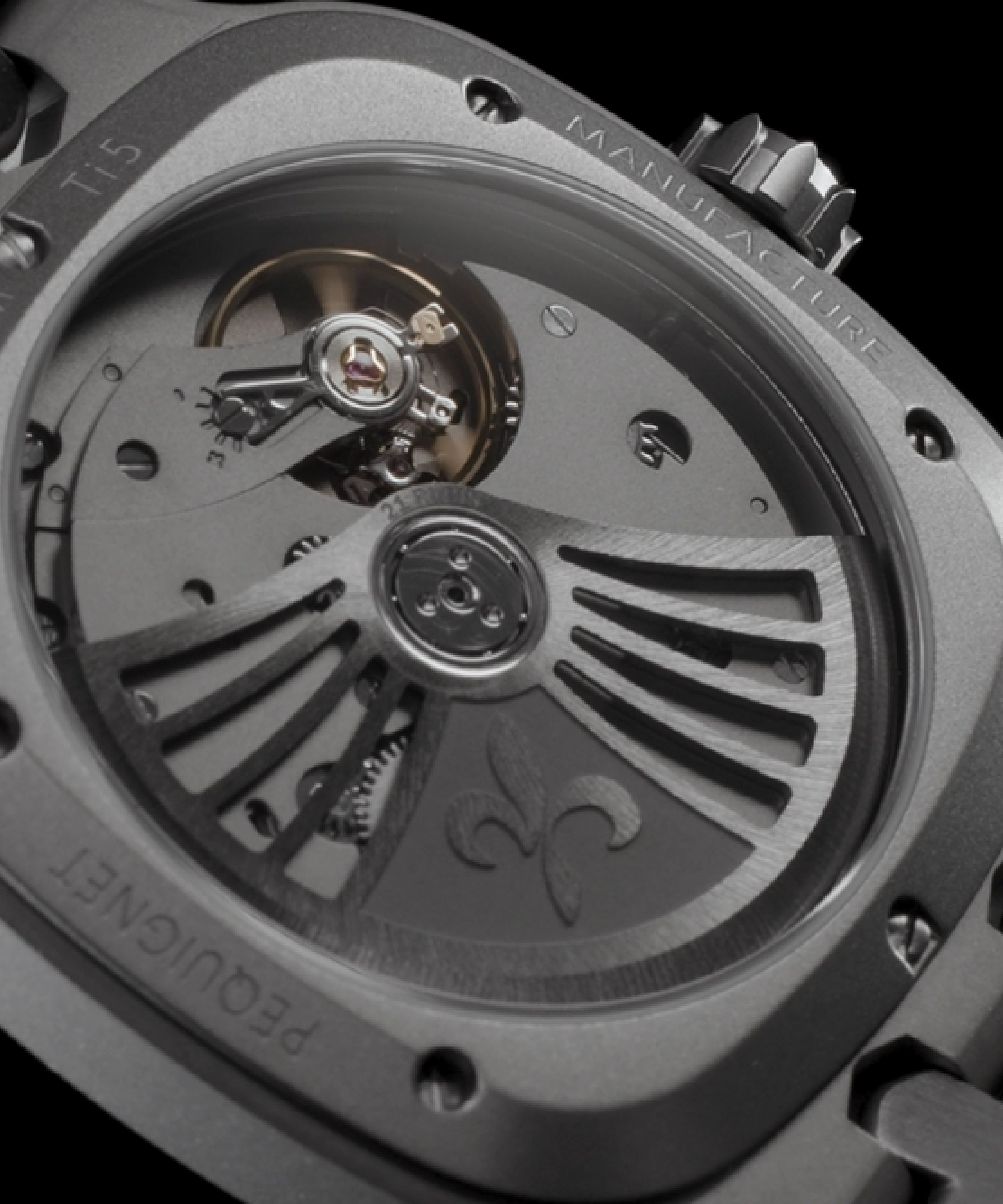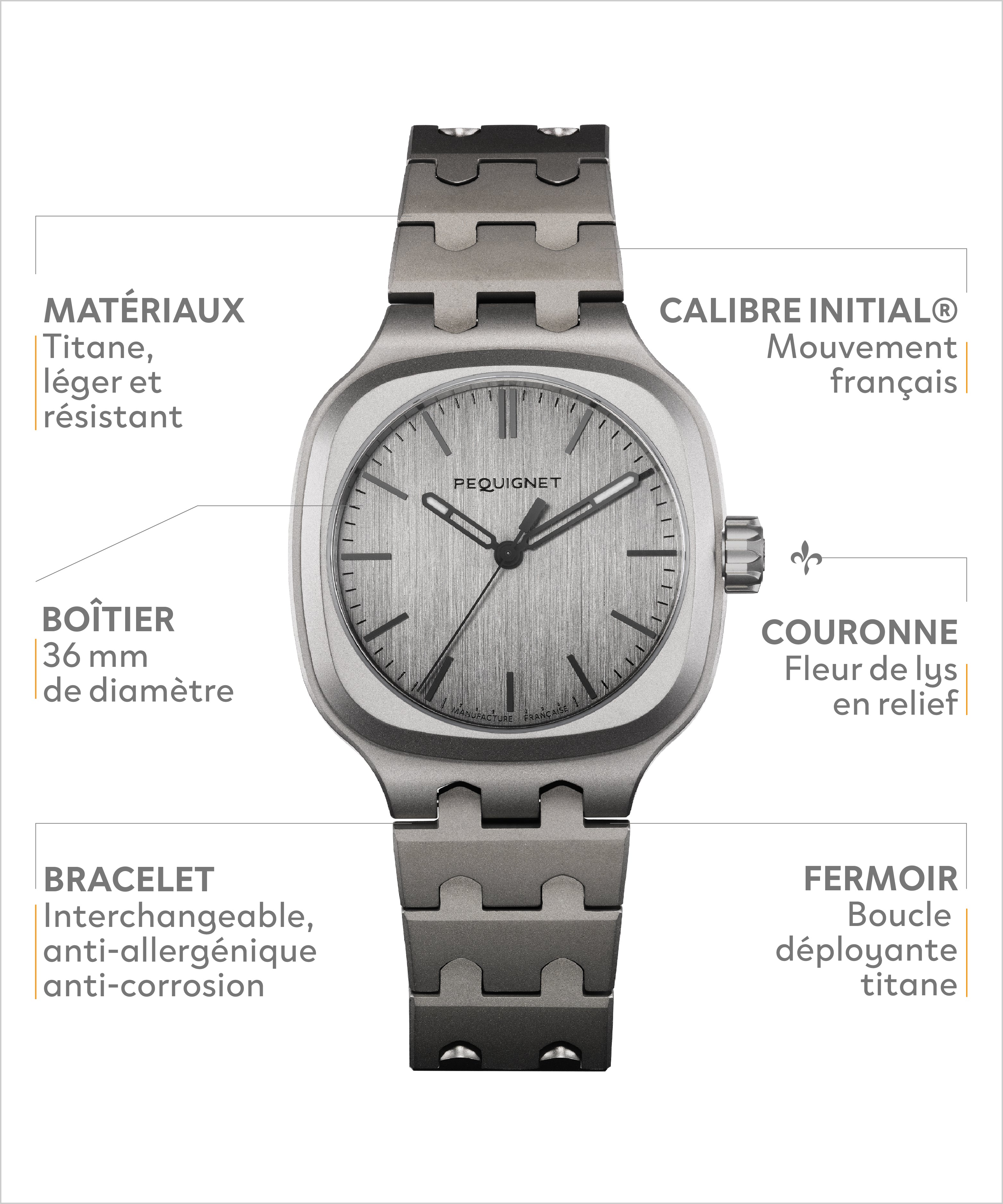 È animato dal Calibre Initial®, il terzo movimento di Manifattura concepito da Pequignet. Per cura del dettaglio, quest'ultimo è stato trattato specificamente al Rutenio per avvicinarsi il più possibile al colore del titanio.