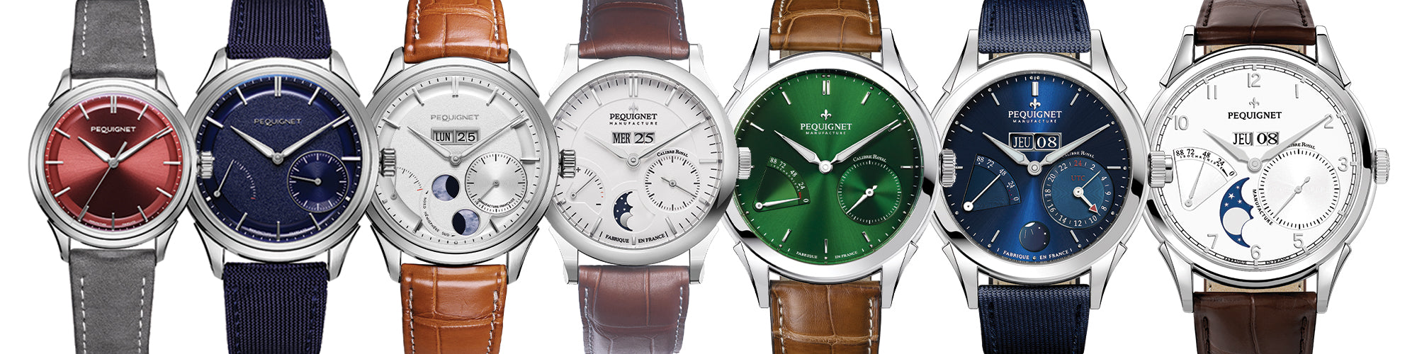Eleganti e raffinati, gli orologi della collezione Royale sono equipaggiati con due movimenti francesi concepiti e sviluppati dalla Manifattura Pequignet in Francia: il Calibre Royal® e il Calibre Initial® (versione 36mm).