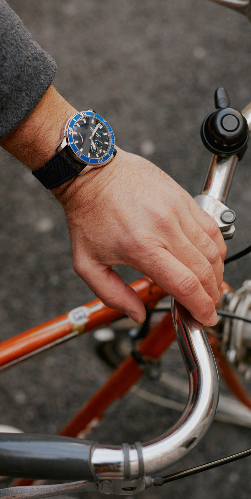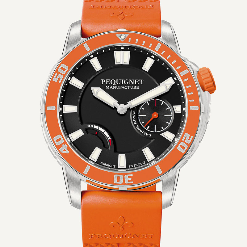Ornati da un cinturino in caucciù nero, blu o arancione contrassegnato dal logo Pequignet, o da un cinturino in cordura in tessuto tecnico ultraresistente e cucito, gli orologi Extrême 300 si chiudono al polso degli atleti grazie a una fibbia pieghevole in acciaio. Una cassa rotonda in acciaio da 43 mm con fondello avvitato non fa altro che completare il design funzionale di questo modello destinato ad accompagnare le avventure di tutti i giorni.