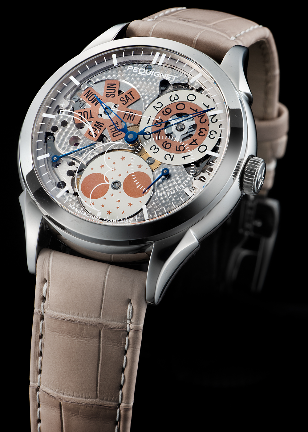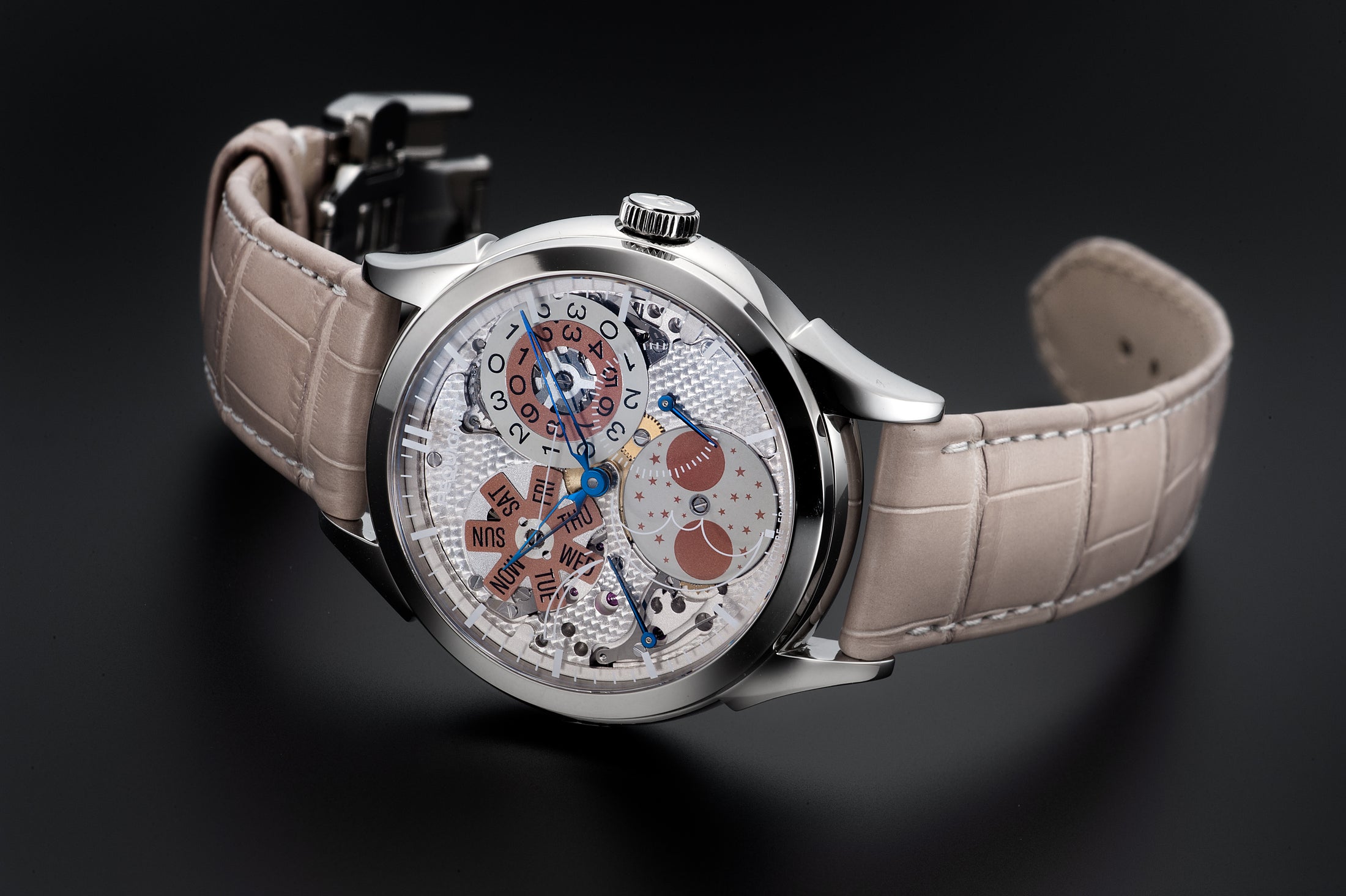 La lettura dell'ora, della data e delle fasi lunari è facilitata dagli indicatori applicati direttamente sotto il vetro. Questa serie esclusiva è limitata a 20 pezzi in acciaio e oro rosa.