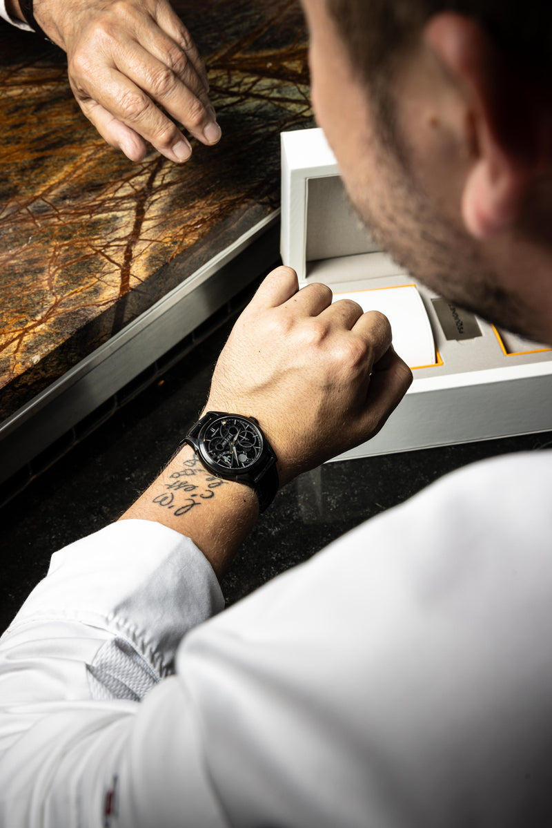Questa collaborazione incarna perfettamente la nostra ricerca dell’eccellenza tecnica ed estetica. Nella sua cucina come nei nostri orologi, ritroviamo la stessa ricerca di autenticità e la stessa esigenza!