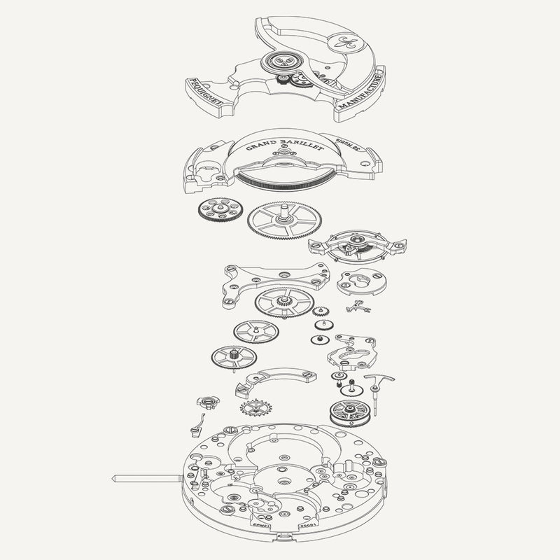 Le Calibre Royal® Tourbillon est le quatrième mouvement "maison" de la Manufacture. Pequignet a voulu un tourbillon dans sa version la plus aboutie, la plus raffinée, la plus horlogère : un tourbillon volant.