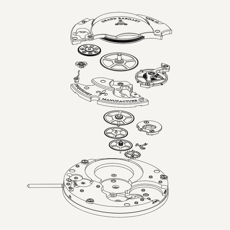 Jusqu’à sa création en 2011, il n’existait plus de mouvement mécanique français de manufacture. La Manufacture Pequignet signe donc avec le Calibre Royal® le renouveau de l’excellence horlogère made in France. Avec ses 318 composants, il est le premier mécanisme de fabrication française à intégrer ses complications horlogères dans la même platine. Sa création aura nécessité 279 plans industriels et 150 outillages aboutissant au dépôt de 8 brevets internationaux. Ravissement du regard, performance et précision, en font un mouvement salué par la critique.